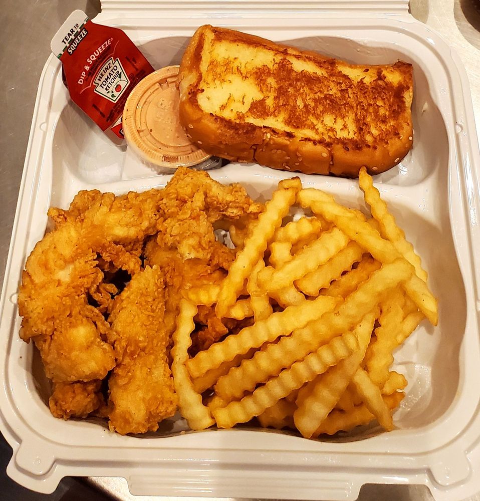 2 Chicken Fingers, Crinkle-Cut Fries, One Cane’s Sauce®, Kids Size Drink (12 oz.) 630 - 740 Cal
